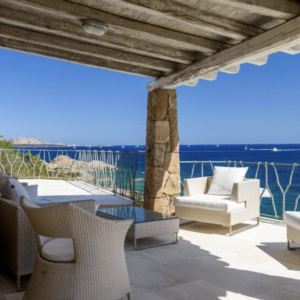 Waterfront Baja Sardinia è un’elegante villa pied-dans-l’eau con accesso diretto ad una bellissima spiaggia sabbiosa. Situata a Baja Sardinia, questa villa si trova in una posizione meravigliosa con una spettacolare vista sul mare che offre un’esperienza paesaggistica senza eguali. La casa, disposta su due livelli, è stata recentemente ristrutturata ed è composta da 5 camere da letto e 4 bagni. La dimensione della casa è di circa 190 mq e il terreno misura circa 1.100 mq. Gli interni, meticolosamente progettati, mostrano un’estetica prominente ed elegante con linee curve: i colori tenui dei mobili aggiungono luminosità e si mescolano dolcemente con l’ambiente naturale circostante. Al piano terra troviamo un’ampia camera matrimoniale, una cucina completamente attrezzata, un bagno e un ampio soggiorno con zona pranzo. Al secondo piano abbiamo una lussuosa suite padronale con bagno privato e ampio patio con vista sulla baia, due bagni, due camere matrimoniali di cui una con vista sul giardino e sul mare e una quinta camera con letti a castello. Un bellissimo patio sul mare conduce alla piscina d’acqua salata a sfioro che si affaccia sul mare con un solarium che la circonda. Completano la proprietà un ripostiglio, una lavanderia e due posti auto.
